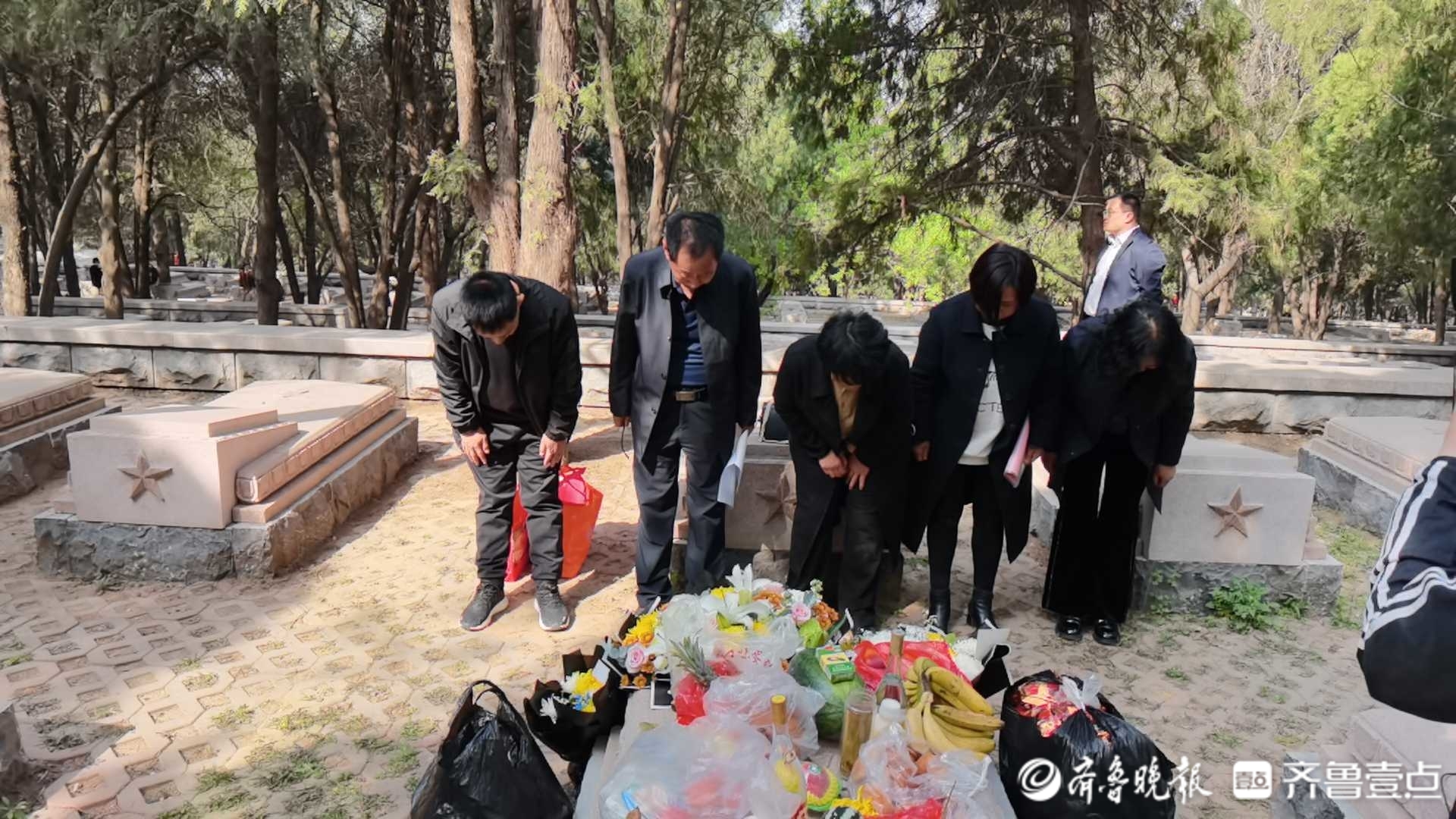 这一拜,王三海烈士等了75年,这一次时隔75年的团聚,也让烈士的亲人悲痛中带着安慰。带着家乡的特产,带着所有亲友的期盼,王三海烈士的侄孙和外甥女等在清明之前来到了他战斗并且定格的济南。