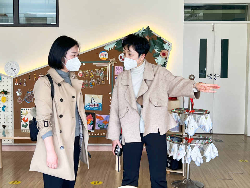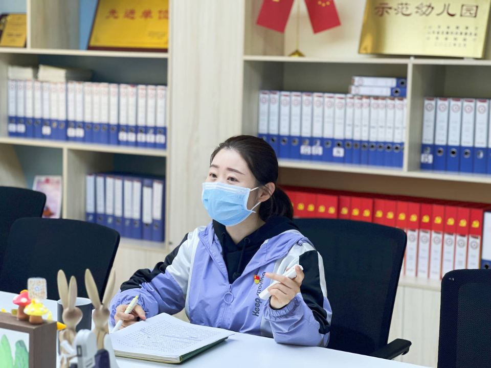 在桌前“漫谈”中:历下三幼嵘汇园相关负责人结合楼梯、走廊、四角的环创从设计、实施、交互等角度深度剖析全环境育人氛围的营造方式。园长从办园特色渊源展开讲述,介绍幼儿园文化理念形成的重要路径。会上,研讨氛围分外浓。