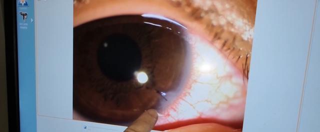 随后,辉辉被送进医院,经过检查,医生发现孩子的眼角膜已经被笔芯射穿了。