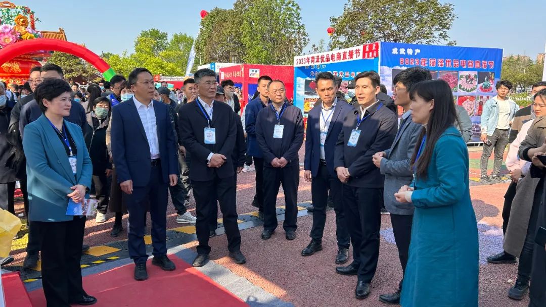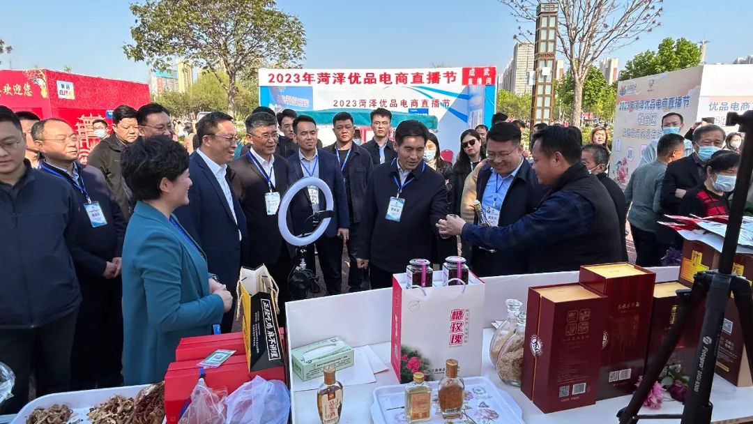 启动仪式结束后,领导嘉宾们参观菏泽市主直播间及各县区、代表企业直播间,各县区电商分管负责同志纷纷走进直播间,宣传推介县区好物。曹州牡丹园直播间16个(1个主直播间,10个县区直播间,5个企业直播间),请京城小二、团长及各县区头部主播同时开播。启动仪式结束后,曹州牡丹园16个直播间(1个主直播间,10个县区直播间,5个重点电商企业直播间)同时开播,各县区电商分管负责同志、京城小二、团长等网红及各县区头部主播纷纷走进各自直播间,宣传推介菏泽及各县区好物。市领导、嘉宾们逐一参观菏泽市主直播间及各县区、重点电商企业直播间,详细了解产品的销售模式、品牌建设、销量、管理规范和电商未来发展趋势等,对我市的直播电商发展充分肯定,表示直播的形式方便消费者多维度、更直观、更全面地了解产品,对促进消费,扩大销售有很强带动作用,市场潜力巨大,希望抢抓产业发展风口,有力有效开展电商直播业务,为新经济新业态创造更好发展环境,进一步推动优势产业与电商直播融合发展。