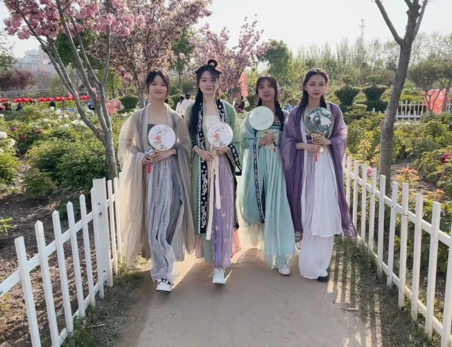 绝代只西子,众芳惟牡丹。身着曹县汉服的牡丹仙子们,走进曹州牡丹园,观赏菏泽牡丹,品尝菏泽美食,矩阵式推介菏泽优品,引得游客们纷纷拍照打卡。