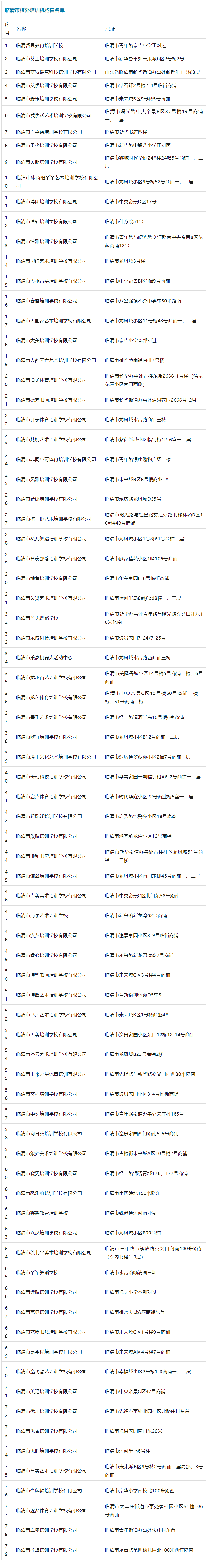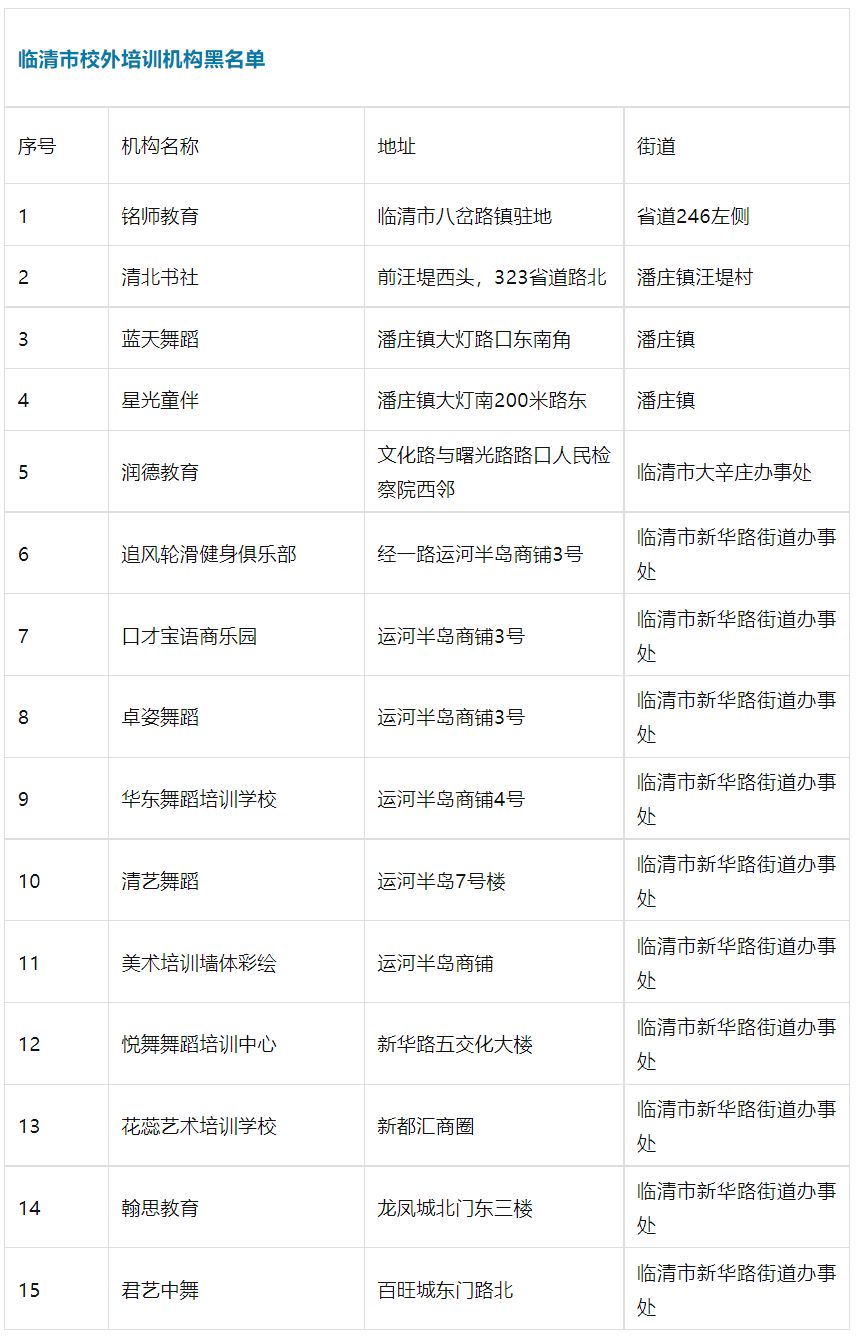 临清校外教育机构黑白名单公布
