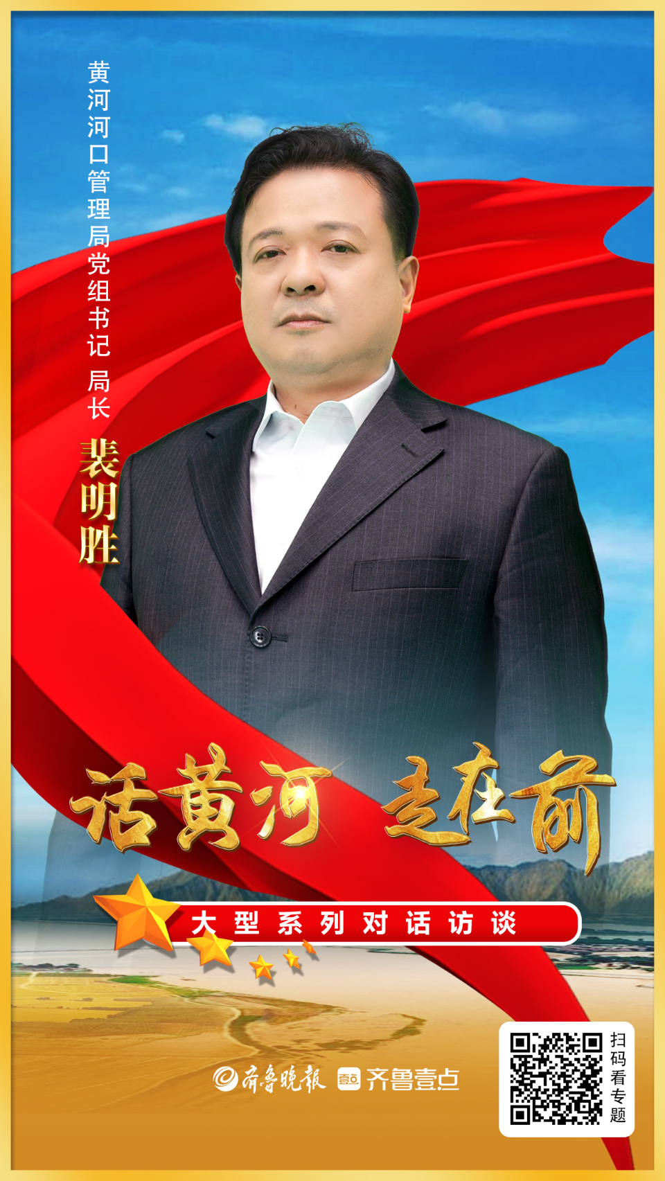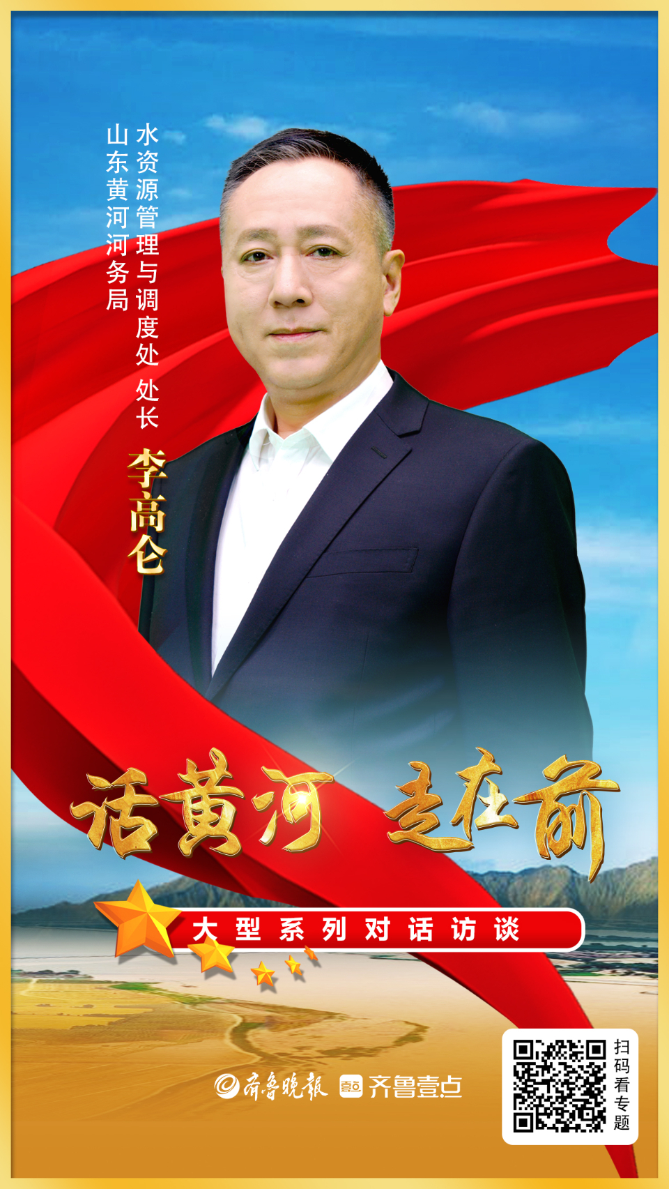海报|“话黄河•走在前”大型系列对话访谈第四期重磅发布 大众报业·齐鲁壹点 2023-04-12 2.5万 近日,由山东省委省直机关工委联合省发展改革委、省生态环境厅、省文化和旅游厅、山东黄河河务局、大众报业集团主办,齐鲁晚报•齐鲁壹点承办的“话黄河•走在前”大型系列对话专访第四期开播,山东黄河河务局党组成员、副局长、一级巡视员王银山,黄河河口管理局党组书记、局长裴明胜,山东黄河河务局水资源管理与调度处处长李高仑做客演播室。 责任编辑:聂婧怡