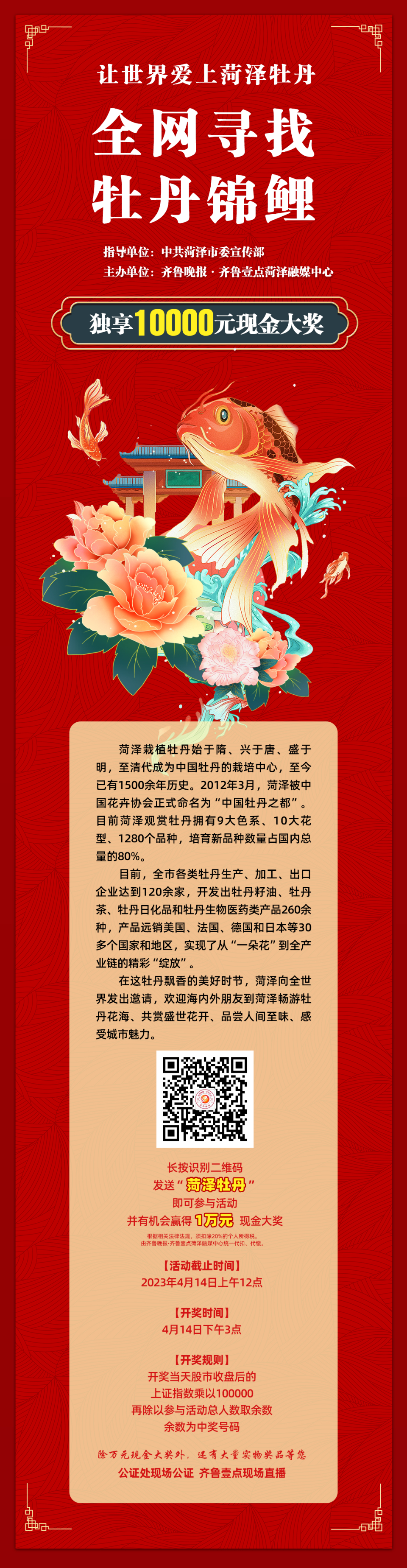 由菏泽市委宣传部指导,齐鲁晚报·齐鲁壹点菏泽融媒中心主办的“全网寻找牡丹锦鲤”活动开始啦!