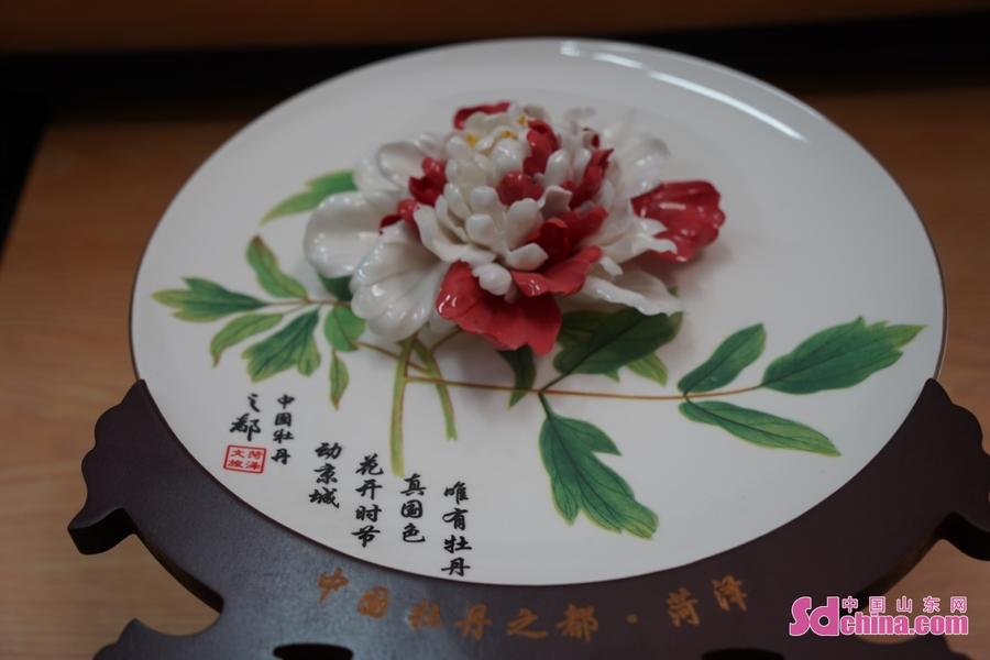 牡丹瓷需要经过二十多道工艺,1300℃高温烧制而成,孩子们将40余片花瓣、花叶片片组装,最后小心翼翼地拨开花瓣。轻轻地点上花蕊,再将素烧后的瓷盘和花朵,分别进行施釉、高温烧制。