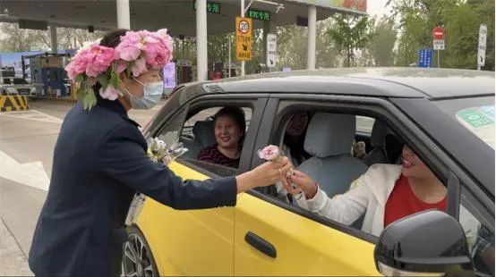 “一下高速就收到牡丹花特别开心,也非常惊喜,感受到了菏泽人的热情好客”,外地游客宋女士十分兴奋。