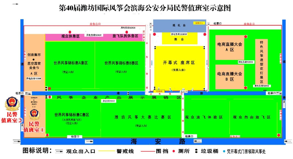 4月15日上午10:00,“云门酱酒杯”第40届潍坊国际风筝会在滨海国际风筝放飞场正式开幕。为了更好的服务大家,保证活动期间现场秩序、维护安全,潍坊市公安局滨海分局在放飞场设立两处民警值班室。