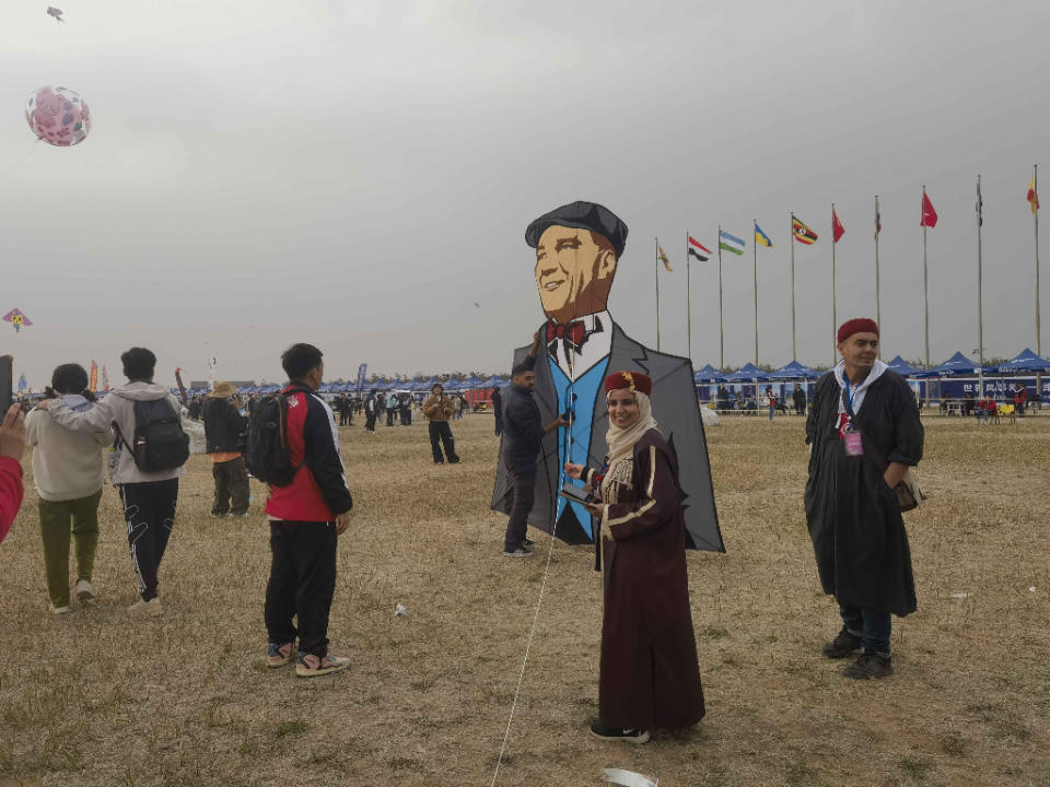 来自土耳其和突尼斯的参赛队员一同在一只土耳其风筝面前合影,记录友谊。“我们是朋友,所以非常开心能在彼此的风筝面前合影。”土耳其的中国志愿者告诉记者,人物形象风筝的放飞,代表了这些外国友人对自己国家与文化的分享欲,而潍坊国际风筝会给予了他们一个交流与分享的平台,这会让越来越多的国际友人在此得到认同感,也会让世界从更加真实与友好的角度看到潍坊。