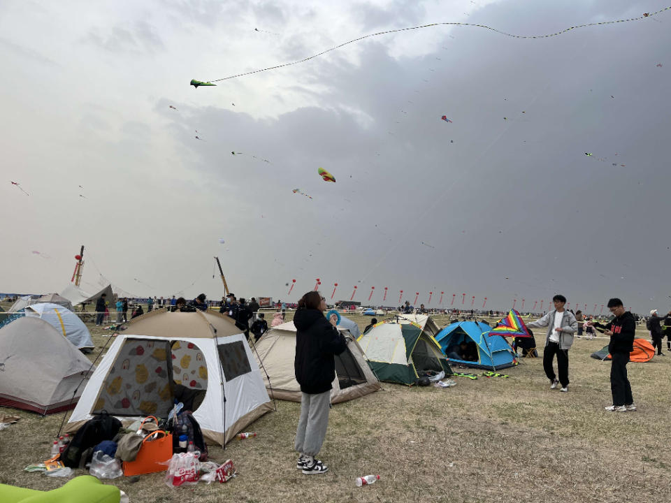 除了文创产品和美食,今年令人耳目一新的还有特色的露营区,来自青岛的柔轩告诉记者,自己是从小红书和抖音上得知有露营区的,跟男朋友一起过来游玩的,“露营区对我们来自外地的游客很友好,因为如果在放飞场呆一整天的话比较累。”这是柔轩第一次来到潍坊国际风筝会,漫天飞舞的风筝让她非常震撼,下次有机会的时候还要再带家人一起来玩。