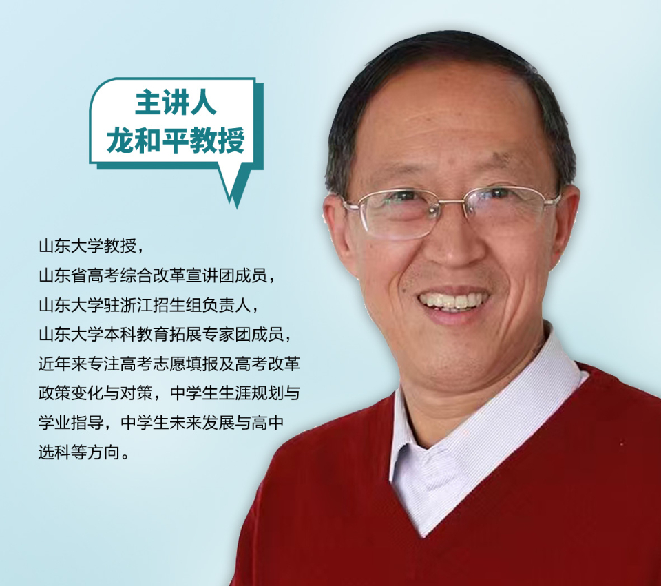 4月21日,新中考陪伴计划继续推出《新高考下,新高一如何选科》,特邀山东省高考综合改革宣讲团的成员、山东大学驻浙江招生组负责人、山东大学教授龙和平,为大家带来新高一科学选科、高中生生涯规划方面的讲解。
