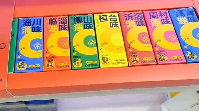 探访过程中,记者注意到展柜上摆放着一个设计独具特色的产品,外包装颜色鲜艳、新潮,加入了满满的淄博文化元素。刘辉表示,这款刚有滋味vc泡腾片礼盒,共有8种vc泡腾片和一个vc咀嚼片盲盒,其中8管泡腾片分别对应淄博五区三县。“我们在做产品口味区隔的同时对淄博各区县的文化进行了一个宣传,给消费者传达健康理念的同时,对淄博文化进行一个传达与输送,希望更多的人可以了解淄博的一些文化。”