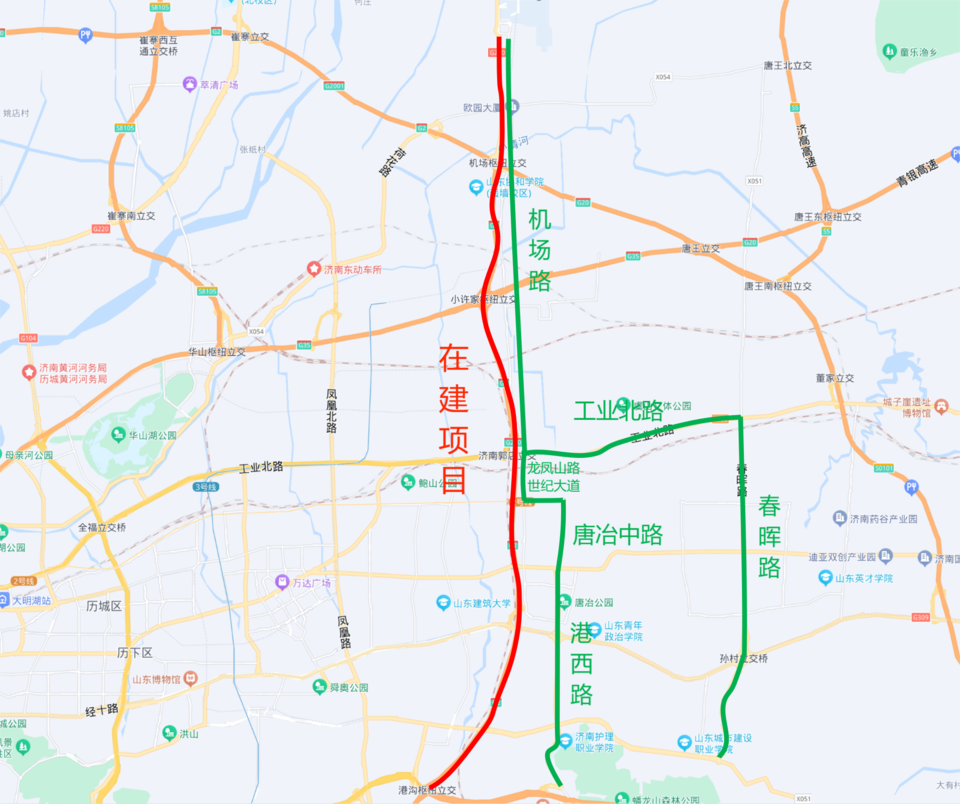 济南绕城高速东线遥墙机场至港沟段,里程桩号K0+000-K25+200。