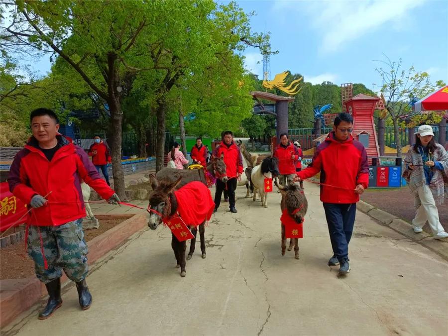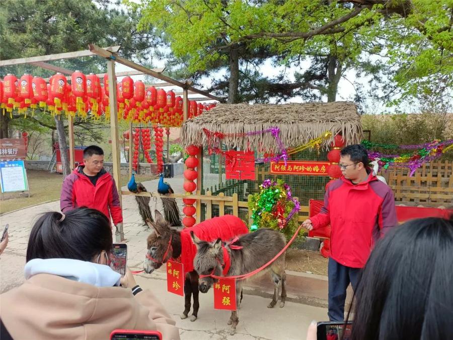 最美人间四月天,四月是充满生机、充满希望的美好时节。4月25日上午,在神秘森林里的亲子主题乐园跑马岭·森林部落,景区工作人员为两只超萌的小迷你驴——萌驴先生“阿强”和萌驴小姐“阿珍”举办了一场温馨浪漫的婚礼。