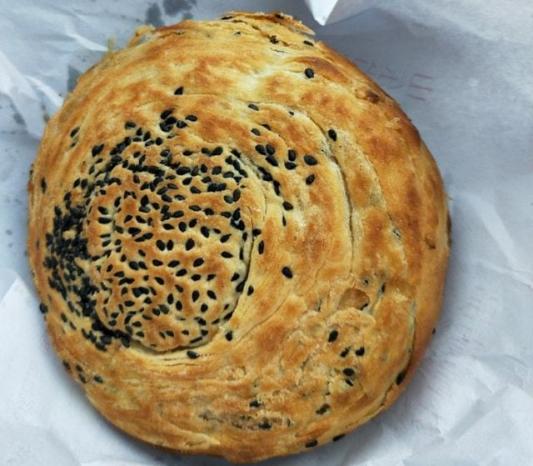 油旋:漩涡状葱油小饼,因为外形酷似螺旋,表面油润呈金黄色而得名。
