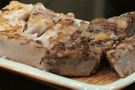 烟台焖子:是山东省烟台市的一道传统小吃,属于鲁菜系,该菜品用粗制地瓜淀粉做原料,将淀粉加水加热打冻,将冻切成小块,用锅煎到外边成焦状颜色由白变透明,并佐以虾油、芝麻酱、蒜汁等调料上桌即可。