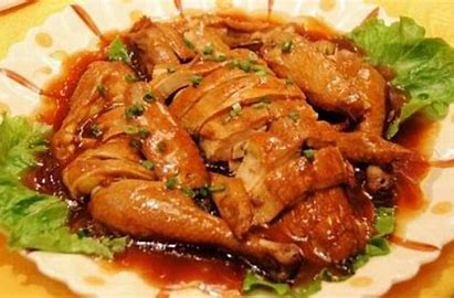 德州扒鸡:为五香脱骨扒鸡的俗称。其口味鲜咸香嫩,造型别致美观,肉嫩骨酥,一抖之下骨脱肉烂,故名脱骨扒鸡。