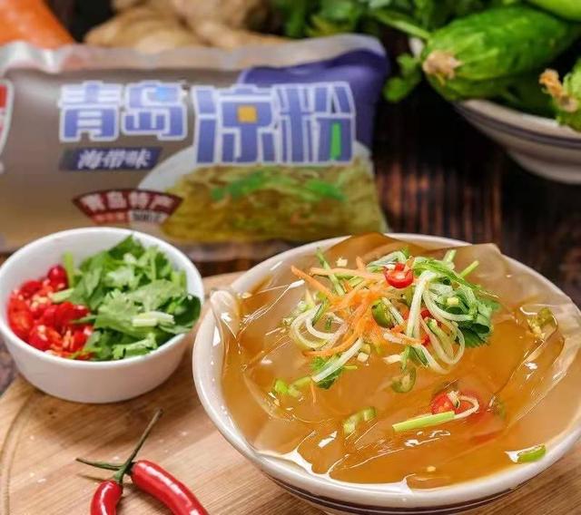 青岛凉粉:几乎是每个青岛原著人都会做的一道美食,在青岛叫做海菜凉粉,主要原料就是青岛这边盛产的一种叫做石花菜的海菜,做好后的凉粉晶莹剔透,爽滑美味,是夏天青岛市民最解暑的佐酒佳肴。
