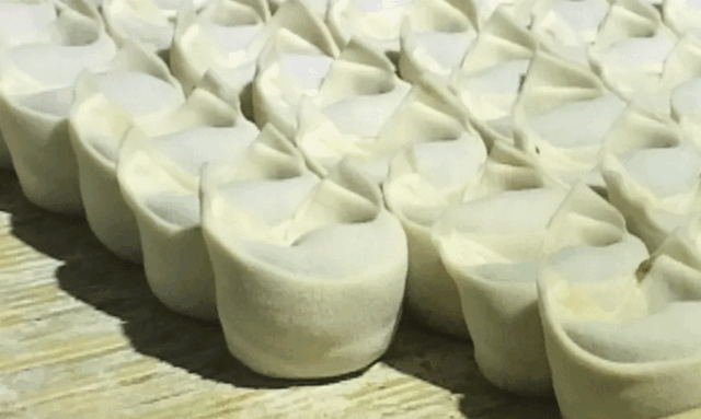 石蛤蟆水饺:石蛤蟆水饺是山东博山的一道传统名吃,它的外形看起来特别像是一个金元宝,这道水饺有一个典型特点就是馅多、肉多。