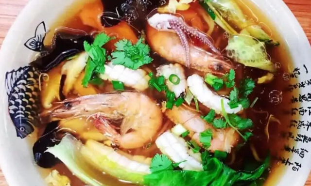 蓬莱小面:蓬莱小面量小、面细、汁鲜,综合了对于美食要求的色、香、味、形、器五个方面。在蓬莱,不论是招待来访的客人还是结婚祝寿,大都要吃小面。在摔小面的过程中尽量将面拉长、拉细、拉均匀,从而象征着感情长远,健康长寿。