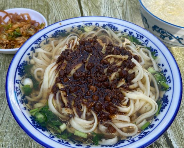 大柳面:德州宁津的大柳面,面条是手擀面,其特点是细如粉丝、 色如嫩柳、 滑爽可口、 软而有力。一般是配卤子的,可分为炸酱、肉卤、麻酱、海鲜、鸡蛋五种卤子。菜码自己选,最后淋上一勺冒香的辣椒油,这一碗齐活了。