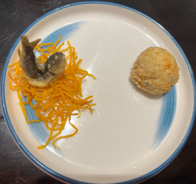 含羞丸子:来自山东枣庄,胖胖的身体,含羞的萌态,是道非常好玩的特色美食,看似简单,其实是一道需要技术的菜品,刚出炉的含羞丸子特别大,金黄酥脆的,凉了后就变小了,外面一层酥酥脆脆,里面软糯可口,也不油腻,直接吃都很可口。