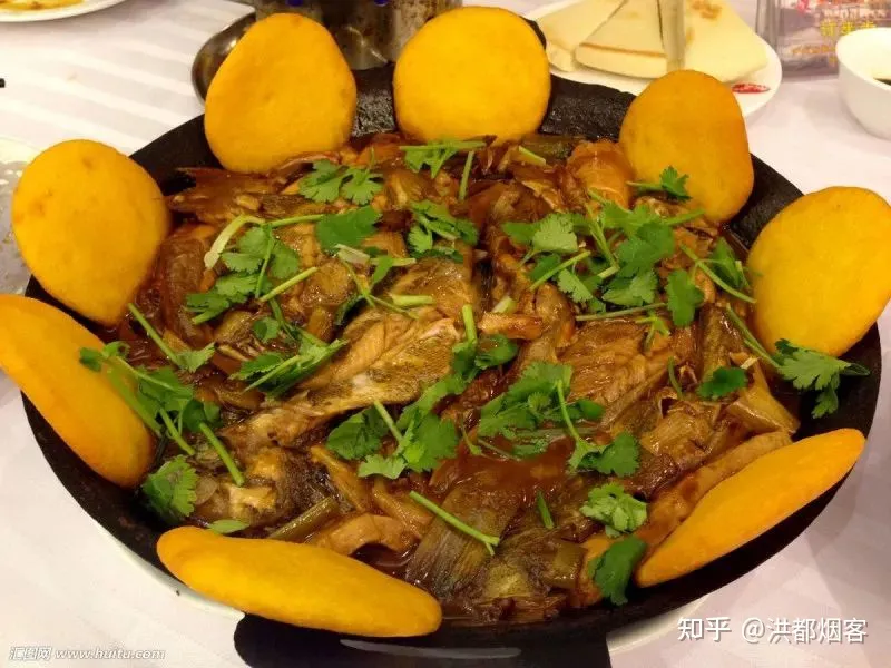 鸡的味道厚重浓郁,回味飘香,经过香料烹香的汤汁慢慢和鸡肉融合,既有鸡肉的鲜美,又有香料的清香,再配上当地特有的“软锅饼”,经过鸡汤的浸泡,赋予了浓郁的香气,回味悠长。