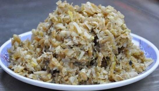 宁海脑饭:脑饭是一种开胃的香辣咸饭,是由复杂制作工艺和许多材料相辅而成,味道也是鲜香咸辣等多味组合,堪称绝美,脑饭的制作过程非常复杂,出锅的脑饭有色有味有形,食时加点辣椒酱,那味道用香喷喷、咸丝丝、辣酥酥来形容是最妥帖不过的。
