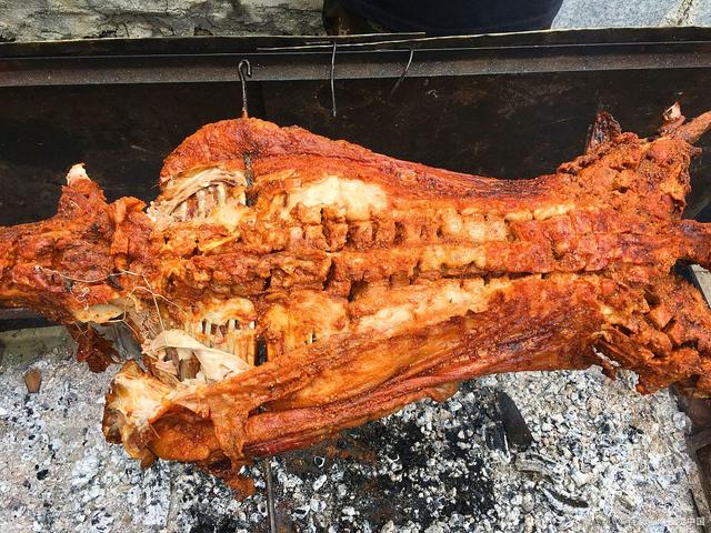黄家烤肉是将猪全部拔毛去除内脏,加入调味料腌制后放入烤箱烘烤而成。刚烤好的烤肉香气扑鼻,只要闻到气味就有食欲,吃皮酥脆的肉,脂肪不腻,越嚼越香。