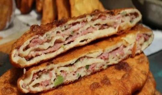 郓城壮馍:是山东菏泽郓城的著名汉族小吃,这种壮馍呈椭圆形,主要是以鲜牛肉馅为主,经过煎炸而成。