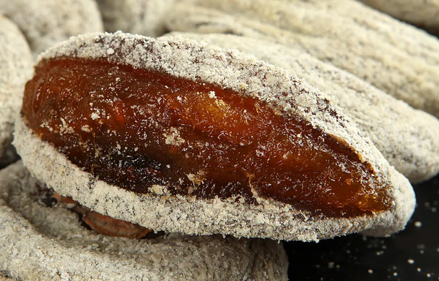 这种柿饼霜后无核,肉质细软,看着橙黄透明,入口成浆,醇厚甘甜,还有着较高的食疗价值,可以润肺清热、健脾等。
