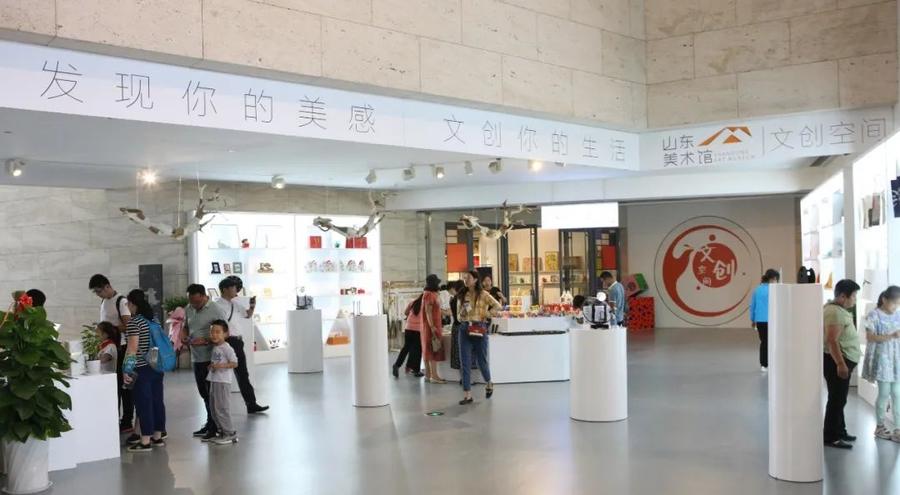 场馆内一楼东南角文创空间,帆布袋、手机壳、笔记本、T恤衫、大摆件、小挂件......常见的物品,不常见的设计。依托山东美术馆丰厚的文艺资源进行的文化创意开发,兼具艺术性与实用性。