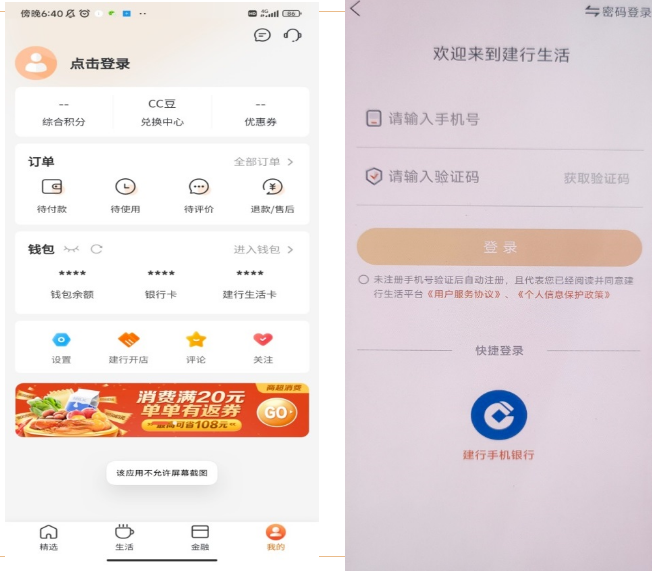 “建行生活” 注册绑卡流程