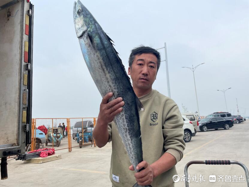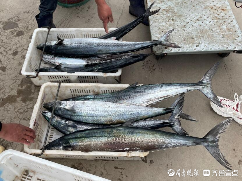 在周先生的摊位前,新鲜上岸的大鲅鱼格外夺人眼球。“这个时候是吃鲅鱼最好的季节,鱼很新鲜,嘴都是红色的,鱼肉包饺子、鱼头鱼尾炖着吃,都很美味。”周先生笑着说,大鲅鱼多数都是餐饮店购买,多的时候一天能卖近千斤。