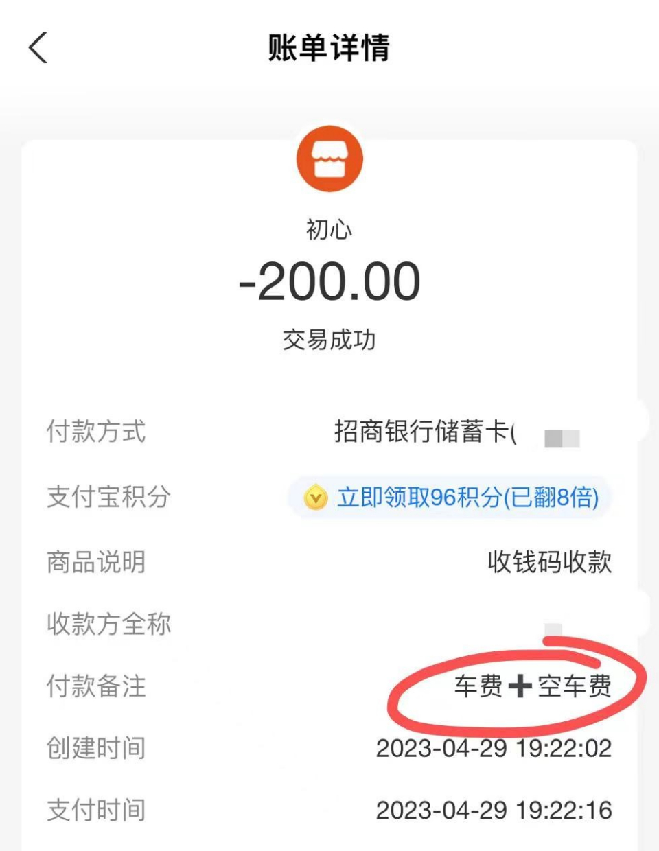 打车费用及额外扫码支付的“空驶费”。