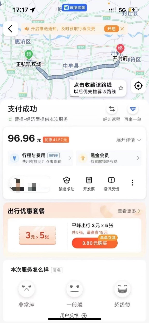 比如4月29日她从登封打车到郑州,行程90公里左右。网约车司机称,政府不允许跨城市接单,且自己返程时很难再接单,所以要额外收取50元“空驶费”。几经协商,曾女士取消平台订单,转向网约车司机转账打车费170元和“空驶费”30元。