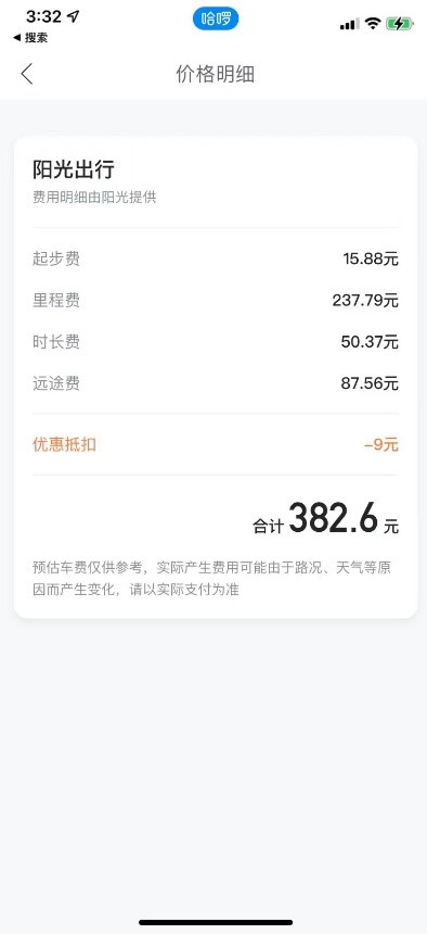 以“滴滴出行”为例,其给出了“极速拼车”“快车”“专车”“第三方服务商”等多种打车服务,但每一个费用中均包含了“远途费”。以最常见的“快车”为例,行程20公里-35公里的部分需额外收费0.75元/公里,超过35公里则需收费0.9元/公里。“哈啰出行”并未提供计价标准,但在收费明细中,也显示存在“远途费”。