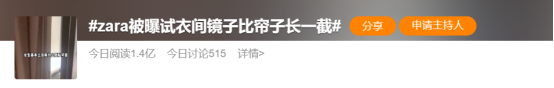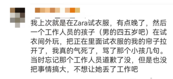 5月8日,#zara被曝试衣间镜子比帘子长一截#的话题冲上了热搜榜前列,引发不少网友的共鸣。