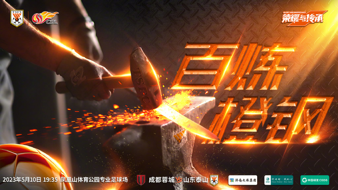 5月10日19:35,山东泰山将在客场挑战成都蓉城。目前泰山队公布了赛前海报,主题为“百炼橙钢”。