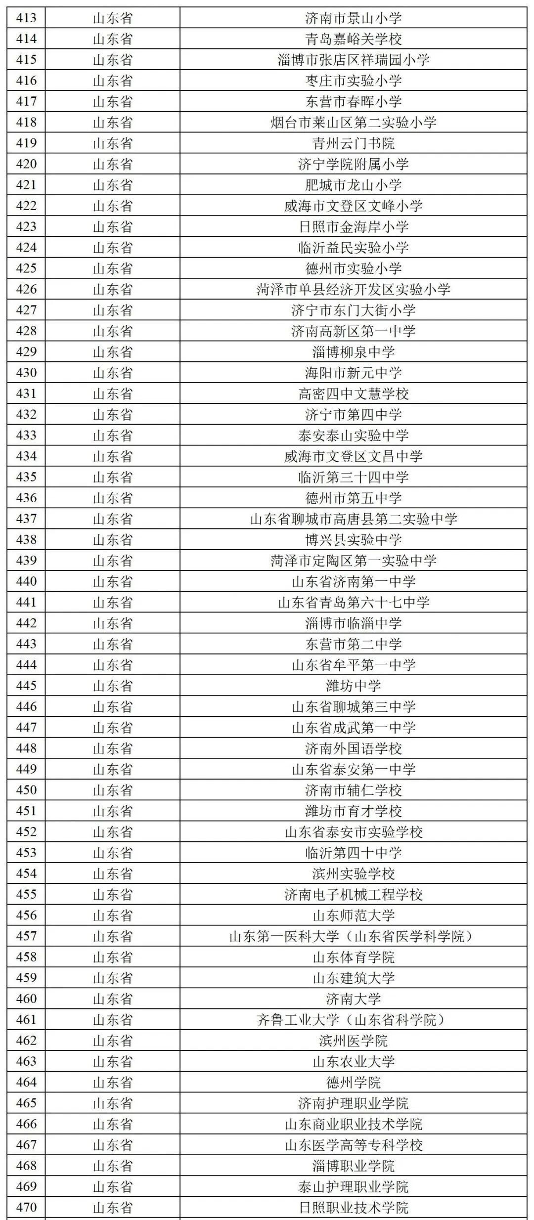 首批全国健康学校建设单位名单(山东省)