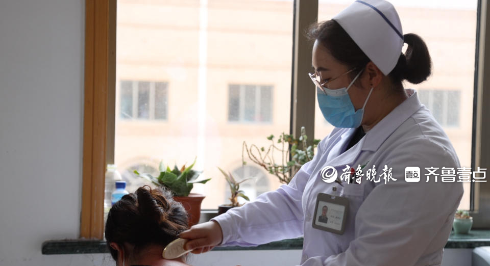 从患者的实际需求出发,不断提升专科护理能力也让毓璜顶医院中西医结合科护士长姜翠红更有干劲。2017年起,她陆续受医院和科室委派外出学习中医护理知识。六年间,她陆续将耳穴贴压、放血疗法、刮痧、拔罐和埋针治疗等技术运用到病房患者的护理中,为很多人解除了疾病之扰。去年11月8日,毓璜顶医院中医护理特色技术门诊开诊,普通人群的保健需求也得到了满足。