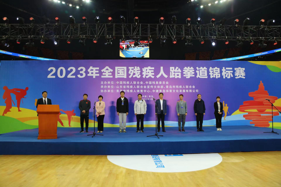 2023年全国残疾人跆拳道锦标赛开赛仪式于5月11日在山东青岛举办。本次比赛由中国残联、中国残奥委主办,山东省残联宣传文体部、青岛市残联承办。中国残联跆拳道项目负责人,山东省残联党组成员、副理事长张文涛,青岛市人民政府副秘书长王东翔,青岛市残联党组书记、理事长张艳等出席开赛仪式,来自16个省份的170余名运动员、教练员将参加为期3天的比赛。