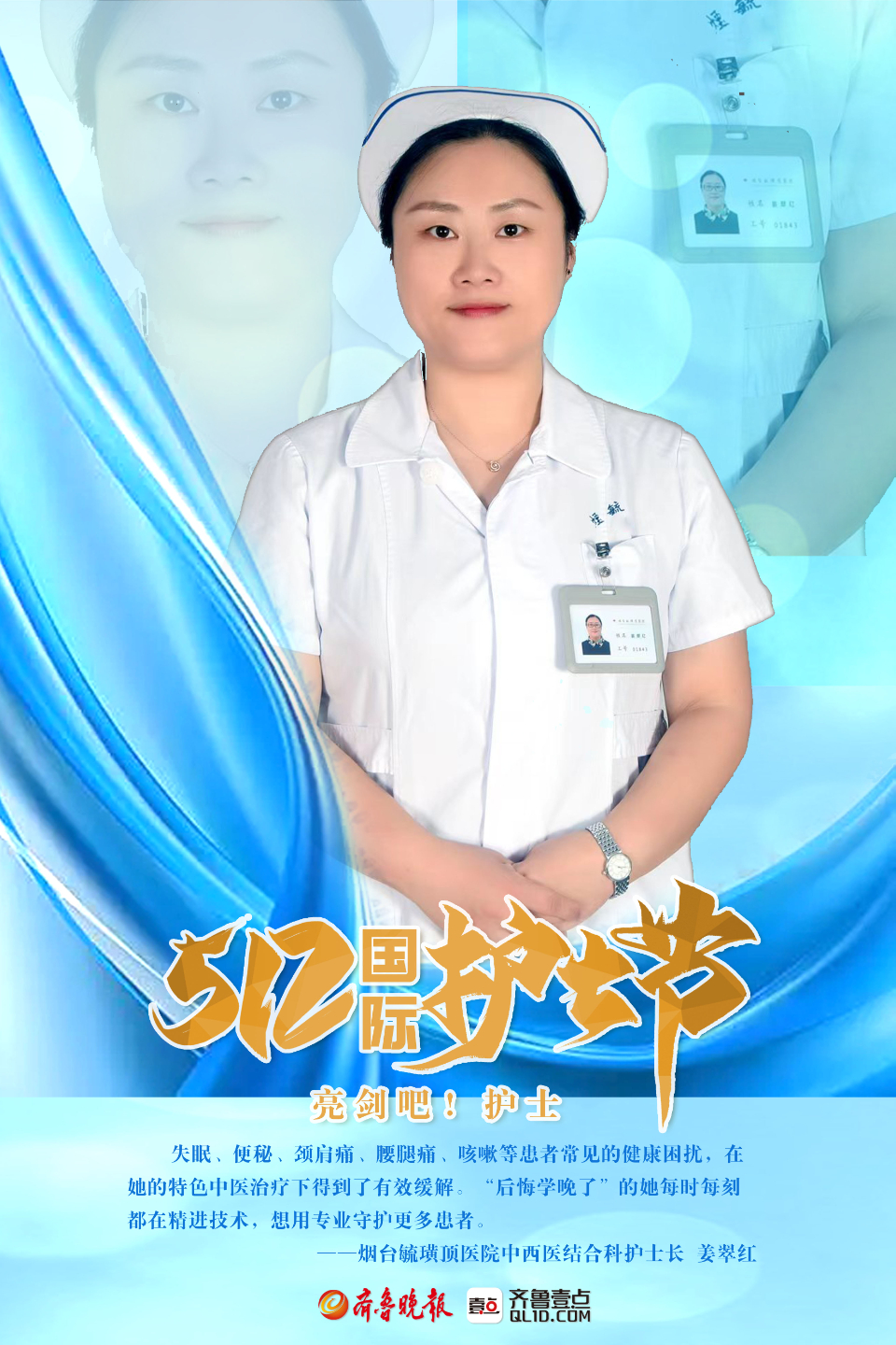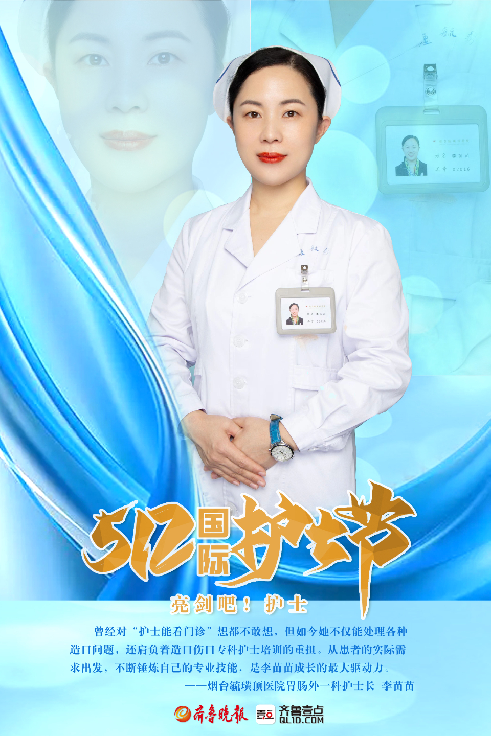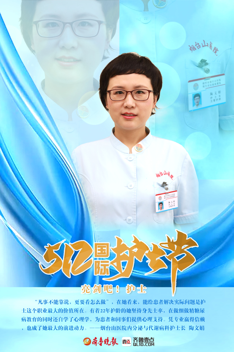 2023年5月12日是第112个国际护士节。在与病魔作战的“战场”上,烟台各大医院里,那些身怀“真功夫”和看家本领的护士们,不断在专业领域深耕,成为守护百姓健康不可或缺的医疗力量。国际护士节到来之际,齐鲁晚报·齐鲁壹点推出一组海报带你领略烟台专科护士的风采,以此向这群奋战在健康一线的守护人致敬。