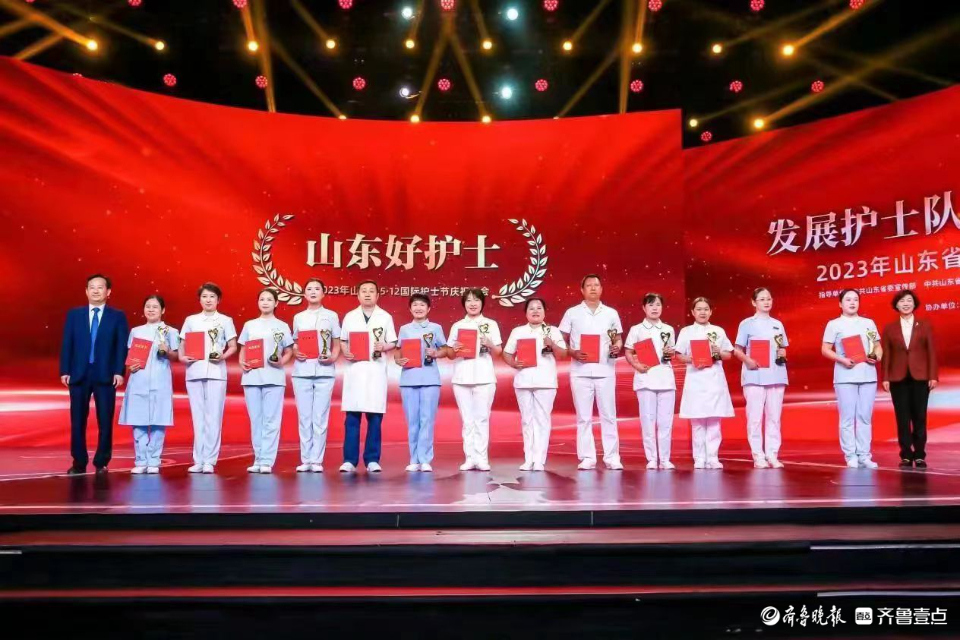 5月12日下午,山东省2023年5•12国际护士节庆祝大会在济南召开,德州市第二人民医院急诊科护士长沙晨被评为山东好护士并上台领奖。