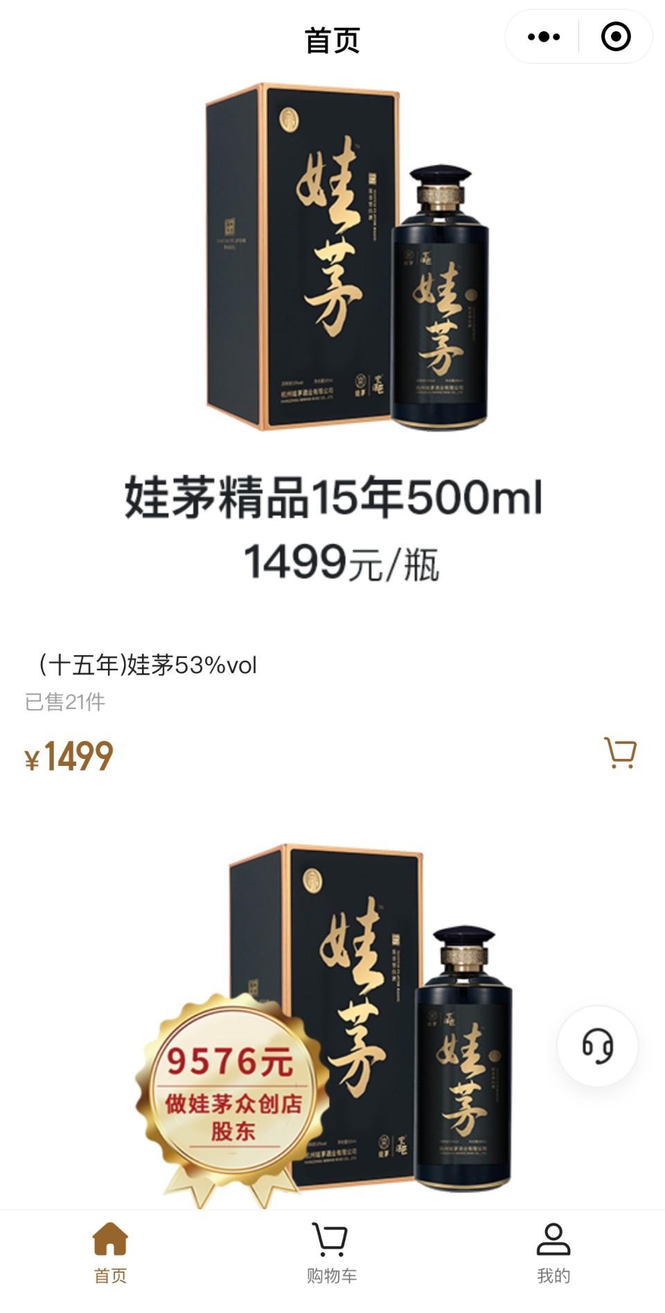 一方面是大股东官司缠身,另一方面,回归娃茅酒产品本身,记者查询淘宝、天猫、京东主要电商渠道,均未发现娃茅酒相关销售信息。而在公司官方小程序内,虽有标价1499元的“娃茅精品15年”与标价9576元的“娃茅众创店股东”两款产品上架,但因娃茅小程序系统升级,暂无法下单,购买需具体联系销售人员。截至目前,小程序内显示,前者销量为21,后者为1。