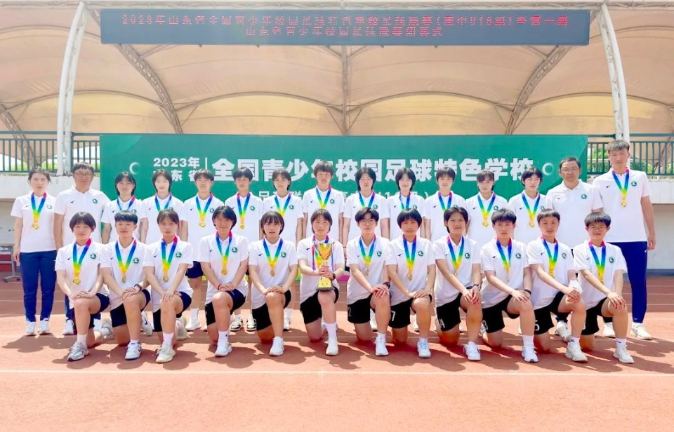 历城二中女足,夺冠! 大众报业·齐鲁壹点 2023-05-23 1.1万 在2023年山东省“全国青少年校园足球特色学校”足球联赛(高中女子U18组)暨第一届青少年校园足球联赛中,济南市历城第二中学获得冠军! 本次比赛中与历城二中同小组的队伍分别有东营二中、滕州二中和济宁高职。经过三场比赛后,历城二中以小组第一顺利晋级淘汰赛。在淘汰赛中分别遇到淄博五中和临淄中学,最终与郯城一中进入决赛并取得本次比赛的冠军。 (来源:历城二中) 责任编辑:巩悦悦