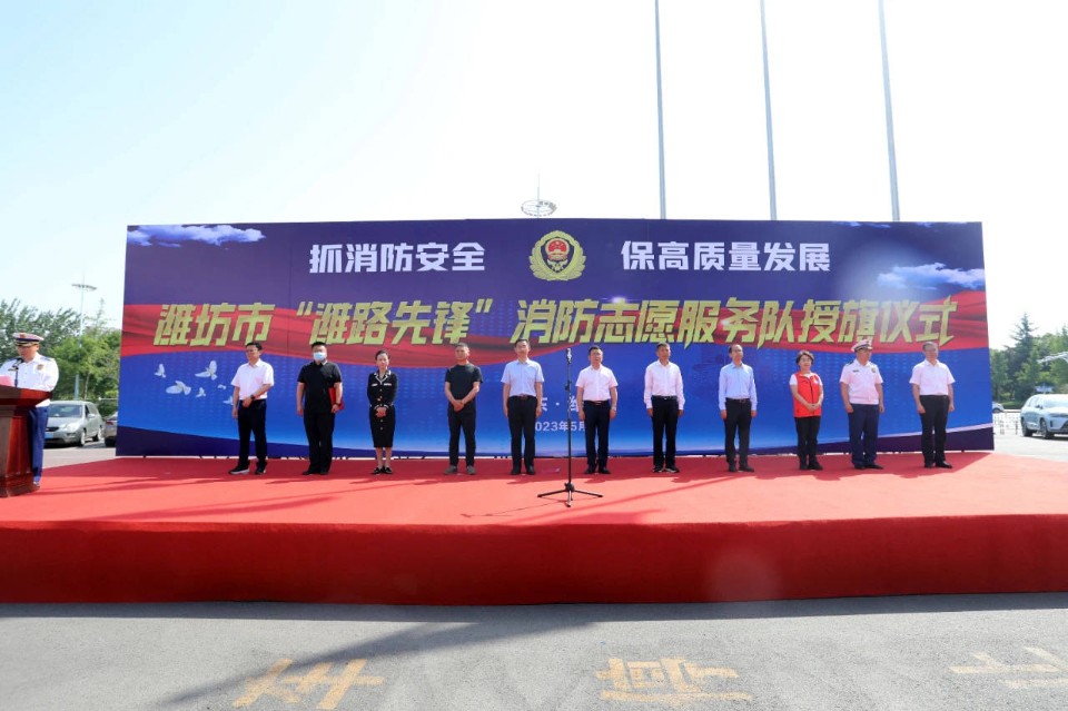 为进一步提升社会面火灾防控能力,深化消防安全宣传“五进”工作,5月23日,潍坊市举行“潍路先锋”消防志愿服务队授旗仪式。