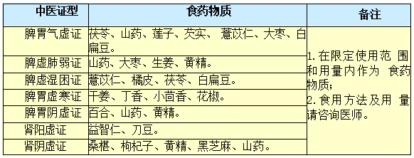 此外,食养指南还给出了针对不同中医证型药食同源食物推荐,如下图: