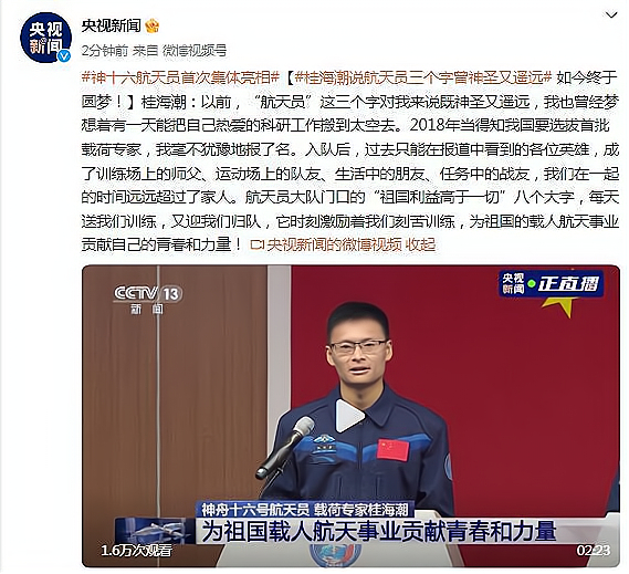 桂海潮说“航天员”三个字曾神圣又遥远,如今终于圆梦!
