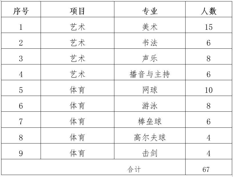 艺体特长生招生简章
