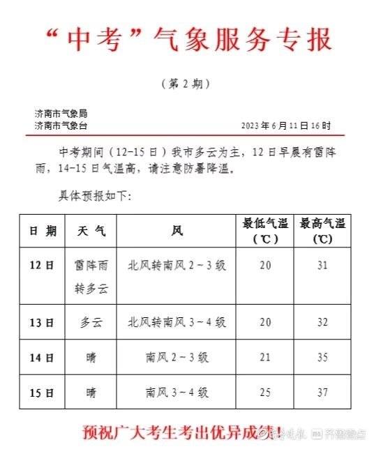 强对流天气来袭!济南中考首日或迎雷阵雨,15日起迎连续高温日